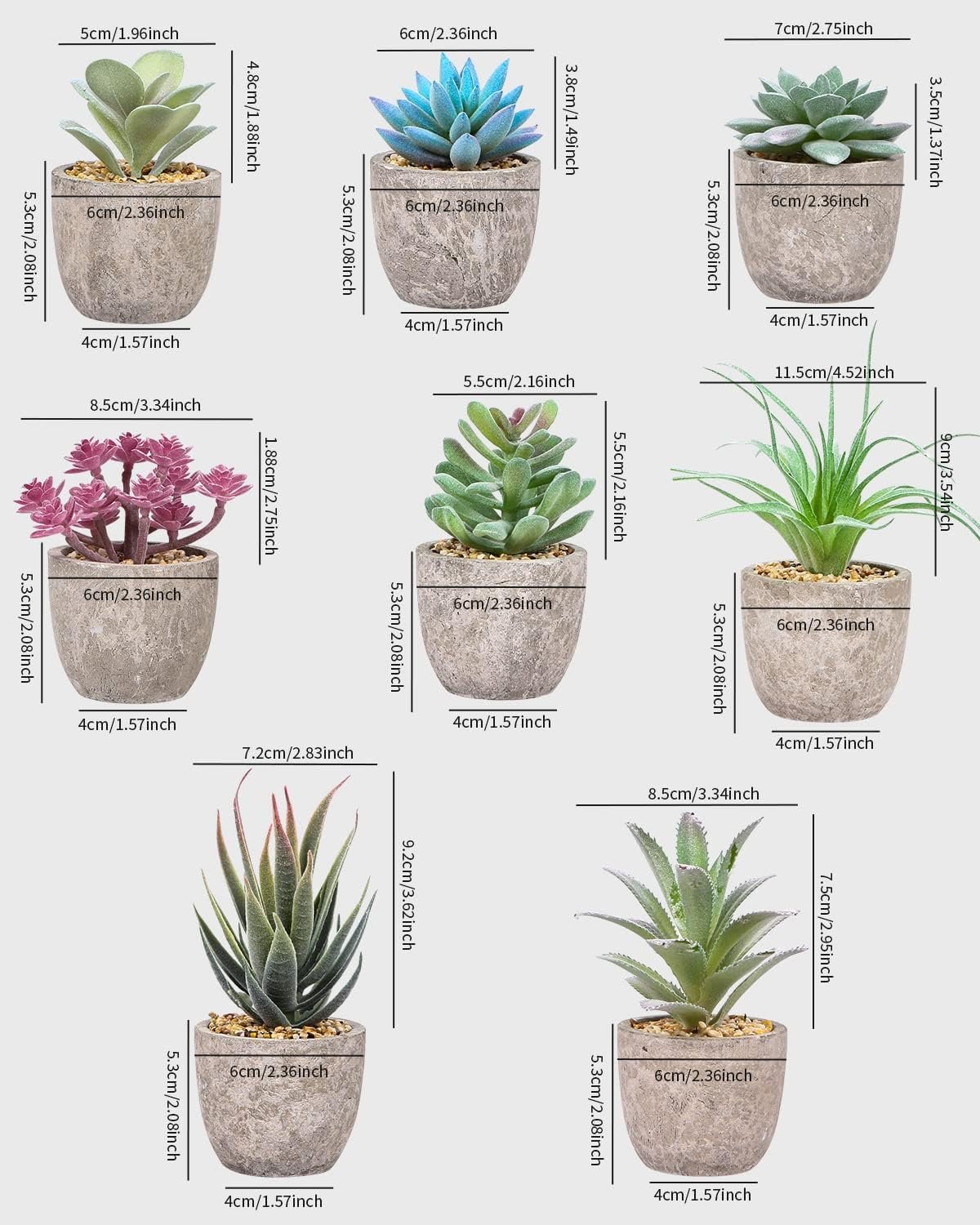 ✨Conjunto abundante: este conjunto incluye 8 plantas en maceta simuladas en miniatura. Cada una de las 8 plantas comprende diferentes suculentas. Tienen diferentes estilos y contenido rico.